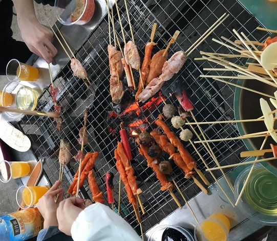 活動現場,大家分工行動,洗菜、切菜、燒肉、拍照,忙得不亦樂乎,都在為了午餐而各顯身手。有些同事的燒烤技術實在不敢恭維,把肉都烤成了“黑炭”;有的同事相當出色,看他們烤出來的肉、雞翅,不僅色澤誘人,而且香飄四溢!大家烤得認真,吃得津津有味,燒烤與飲料搭配,歌聲與歡笑點綴,顯露出長隆人之間單純的情誼;你一言、我一語,讓成員們認識了彼此,也熟悉了彼此。